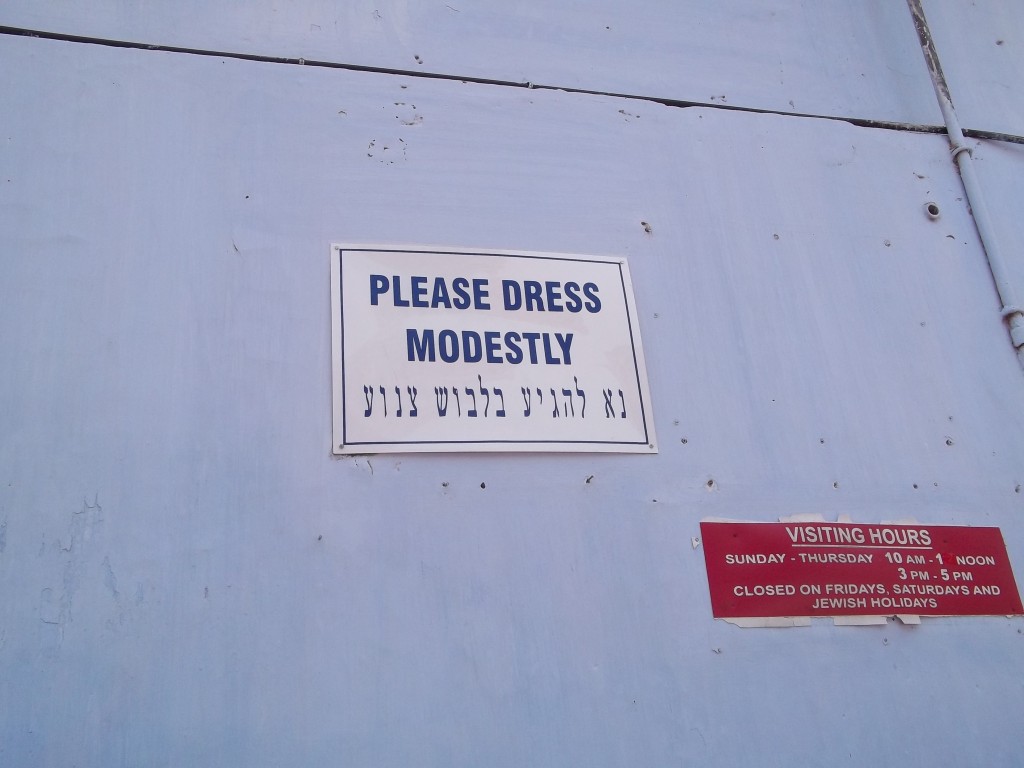 Outside the walls is a board saying “Please dress modestly”. The passage next to the synagogue is closed by chains with a board saying “no one is allowed here”. Inside the synagogue other boards read “no one is allowed inside the pulpit” and “no one is allowed upstairs”. The synagogue seems to resent being converted into an object of tourist curiosity – and appears to jealously guard itself from outside eyes.